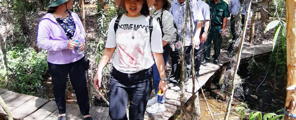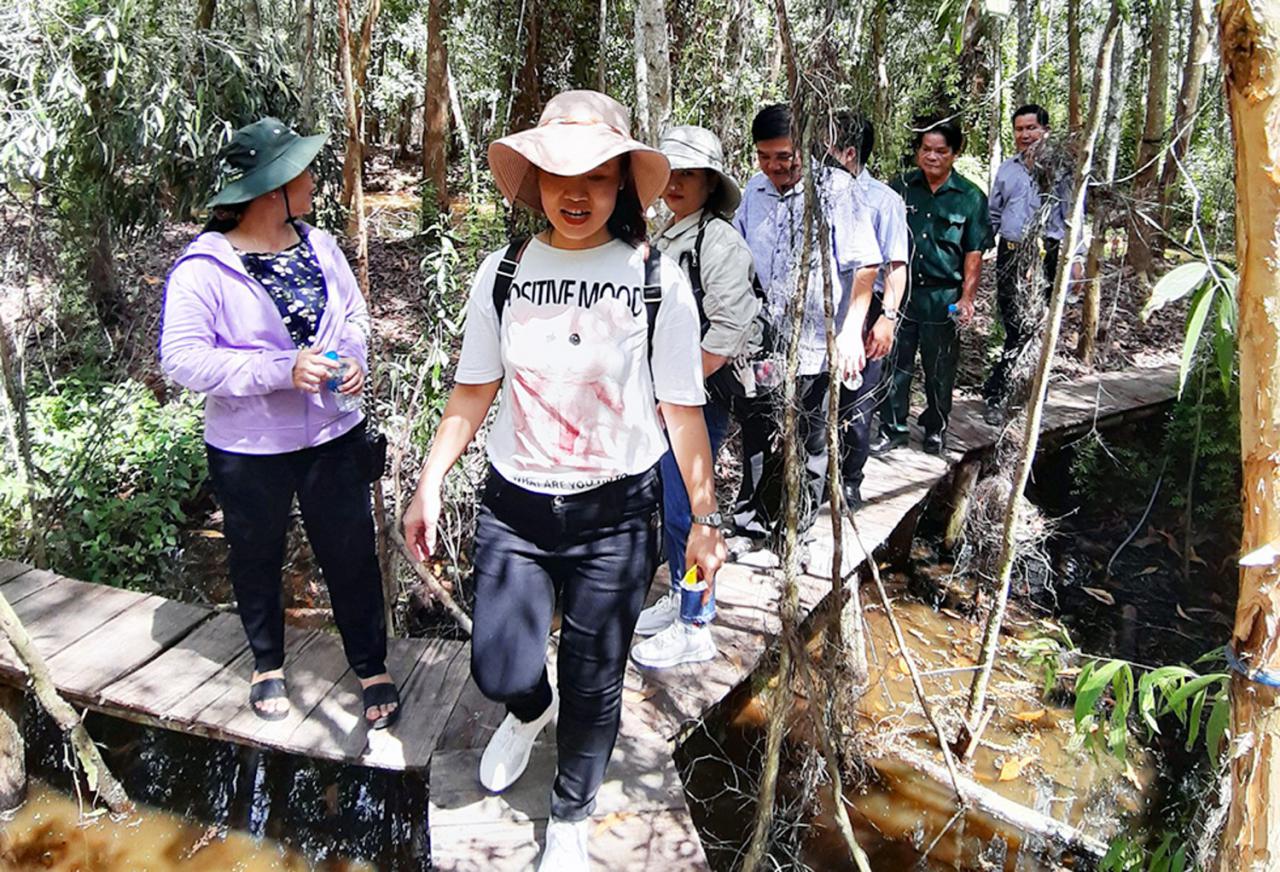 Khách tham quan rừng tràm Tân Tuyến. Báo An Giang.