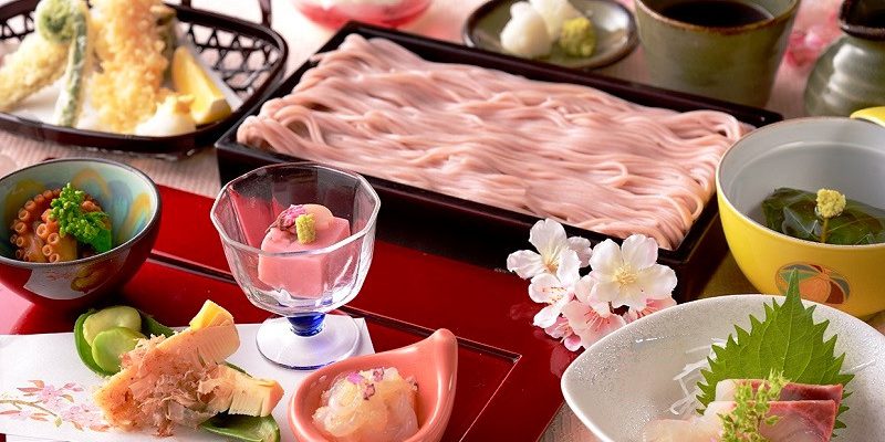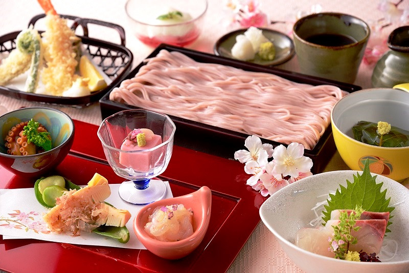 Hoa anh đào được tán ra thành bột tẩm ướp vào các loại mỳ để tạo thành màu hồng đặc trưng. Món mỳ lạnh sakura rất được người Nhật ưa chuộng vào mùa hè đặc biệt khi ăn kèm với nước tương hảo hạng.