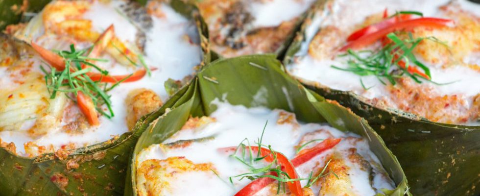 Cá hấp Amok là 1 món ăn truyền thống độc đáo của người Campuchia với cách chế biến vô cùng công phu. Món ăn là sự kết hợp tuyệt hảo giữa vị ngọt thanh của đường thốt nốt, béo ngậy của cốt dừa, mắm bò hóc thơm nhẹ và đặc biệt không thể thiếu cá lóc tươi ngon từ biển Hồ.