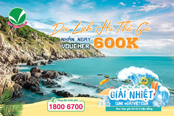 Quý khách hàng mua tour bất kỳ tại các văn phòng, chi nhánh hoặc hệ thống online của Đất Việt Tour sẽ được tặng voucher du lịch 600.000 đồng (Bao gồm voucher du lịch nước ngoài trị giá 500.000 đồng và voucher du lịch trong nước trị giá 100.000 đồng).