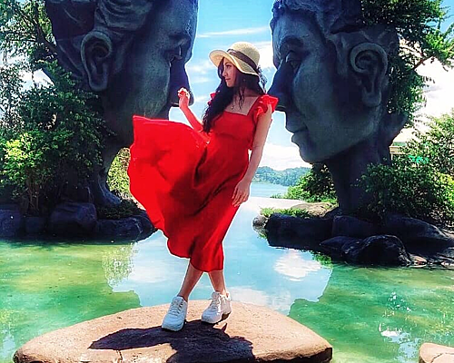 Dù mới đưa vào hoạt động nhưng hồ Vô Cực đã thu hút đông đảo du khách vào những dịp cuối tuần, đặc biệt là các cặp đôi tới đây chụp ảnh. Để chụp được một bức hình có background "sạch", có lẽ bạn còn phải canh rất lâu. Ảnh: _tranthaovy_