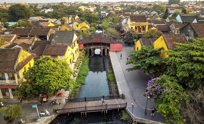Chùa Cầu nhìn từ trên cao, biểu tượng của du lịch Hội An.