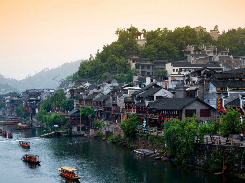 Phượng Hoàng cổ trấn nằm ở phía Tây tỉnh Hồ Nam, cách Trương Gia Giới khoảng 280km. Cổ trấn này nằm nép mình bên dòng sông Đà Giang hiền hòa, thơ mộng. Cổ trấn này là nơi sinh sống của các dân tộc thiểu số như Miêu, Hán, Thổ Gia, Hồi. Dù đã hơn 1300 năm tuổi nhưng Phượng Hoàng cổ trấn vẫn còn giữ được gần như vẹn nguyên những giá trị, cảnh quang xưa cũ. Đặt chân đến nơi đây trong chuyến du lịch Trung Quốc, bạn sẽ có cảm giác như đang ngược dòng thời gian, trở về với những năm tháng xa xưa.