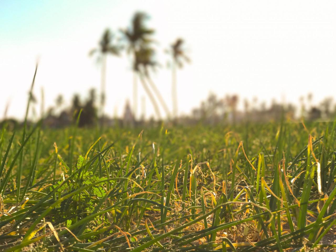 Trên cánh đồng trồng hành, tỏi từ cát sa thạch của núi lửa Lý Sơn vào buổi cuối chiều.