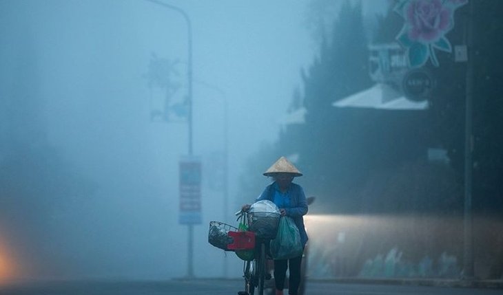 hình ảnh người phụ nữ ra chợ trong màn sương sớm – Ảnh: Nguyễn Hiếu