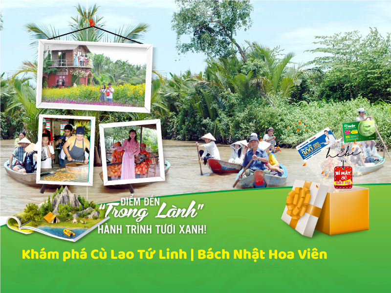 - Tặng tour khám phá Miền Tây Cù Lao Tứ Linh Bách Nhật Hoa Viên (1N).