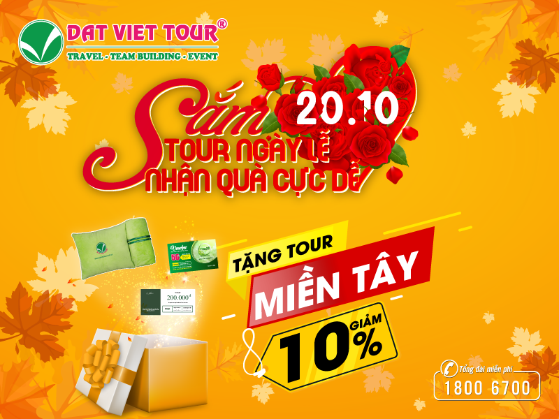 Nằm trong chuỗi hoạt động kích cầu du lich trong nuoc Quý 4 năm 2020 và chào đón ngày Phụ nữ Việt Nam – 20.10, Đất Việt Tour tiếp tục mang đến cho khách hàng chương trình ưu đãi khủng với chủ đề: “Sắm tour ngày lễ – Nhận quà cực dễ”. Tặng tour miễn phí, giảm sốc giá tour, tặng combo voucher giá trị,… tất cả sẽ được dành tặng cho Quý Khách hàng khi sử dụng dịch vụ tại Đất Việt Tour.
