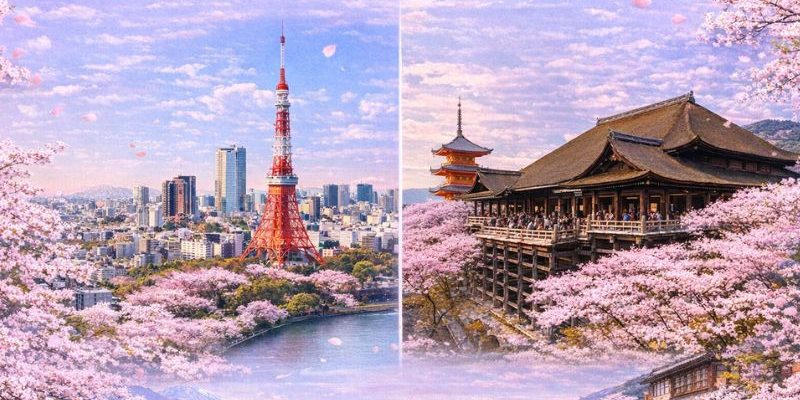 Mỗi độ xuân về, Nhật Bản lại rực rỡ trong sắc hồng của hoa anh đào Sakura. Du lịch mùa hoa anh đào không chỉ là hành trình ngắm cảnh mà còn là cơ hội cảm nhận vẻ đẹp tinh tế và văn hóa đặc trưng của xứ Phù Tang. Tuy nhiên, khi lên kế hoạch du lịch Nhật Bản mùa hoa anh đào, nhiều người băn khoăn nên chọn Tokyo đương đại hay Kyoto cổ kính để có trải nghiệm trọn nhất. Chúng tôi sẽ giúp bạn so sánh chi tiết để chọn lựa điểm đến hợp nhất cho hành trình ngắm hoa anh đào Sakura.